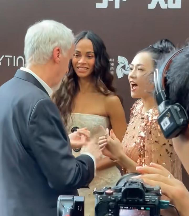 至于与卡梅隆的互动,有影视圈内人给出专科视角:“在这么高规格的国际姿首首映礼上,主要配音演员紧贴导演是旧例动线安排,亦然为了配合媒体拍照需求。许多互动可能是场合使然,被镜头单独截取放大后,容易过度解读。”